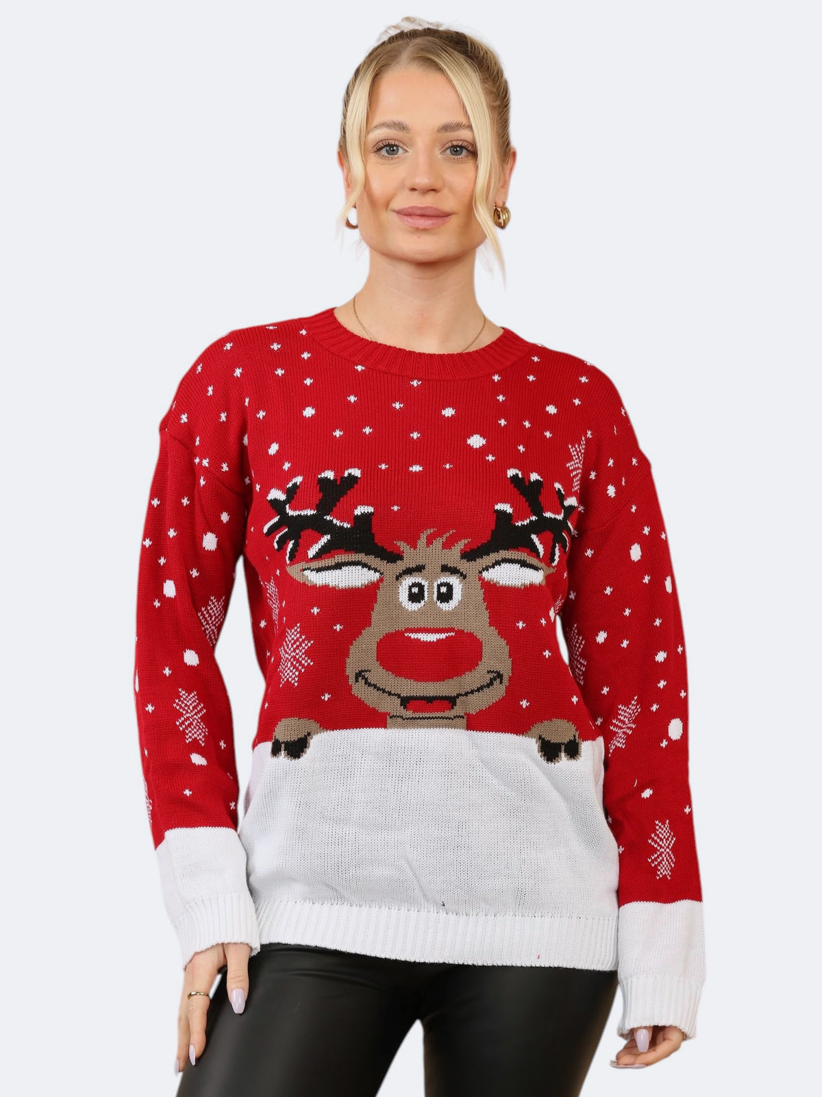 Women's Knitted Xmas Reindeer Rudolph Christmas Jumper